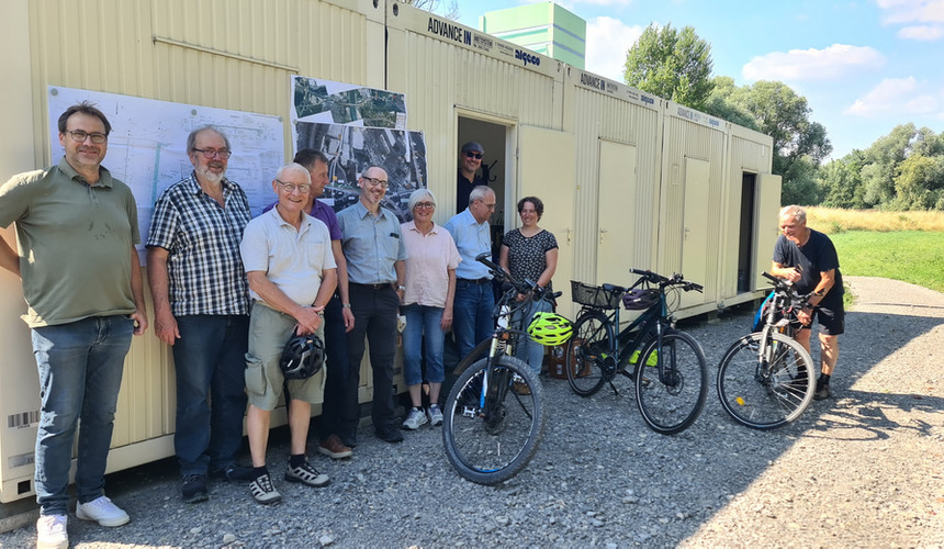 Bei schönstem Fahrradwetter fand am 10. Juli 2025 die Radtour der Bezirksgruppe 1/3 statt. Ziel war die Baustelle zur Erneuerung der Albbrücke im Zuge der B 10 in Karlsruhe. Ein großes Glück, dass sich so eine interessante Baustelle sozusagen unmittelbar vor der Tür zumindest für einige der Bezirksgruppenmitglieder befindet. Herr Genthner, Referatsleiter des Baureferats Mitte und Herr Reger, Bauleiter der Brückenbaustelle haben uns herzlich in Empfang genommen. Sie haben uns ausführlich über die notwendige Erneuerung informiert und im Anschluss über die Baustelle geführt. Die bestehenden Überbauten wurden seinerzeit mit spannungsrisskorrosionsgefährdetem Sigma-Spannstahl erstellt, der schnellstmöglich zu ersetzen ist. Der SWR war während des Abrisses des ersten Überbaus mehrfach vor Ort, so dass eine schöne Dokumentation entstanden ist. Herr Genthner und Herr Reger kommen darin mehrfach zu Wort.